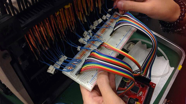 I transformed every single button of the typwriter as a switch to trigger the signal and send it over to Processing in laptop. Signals then are translated into letters, and start-playing, pause, enter keys.