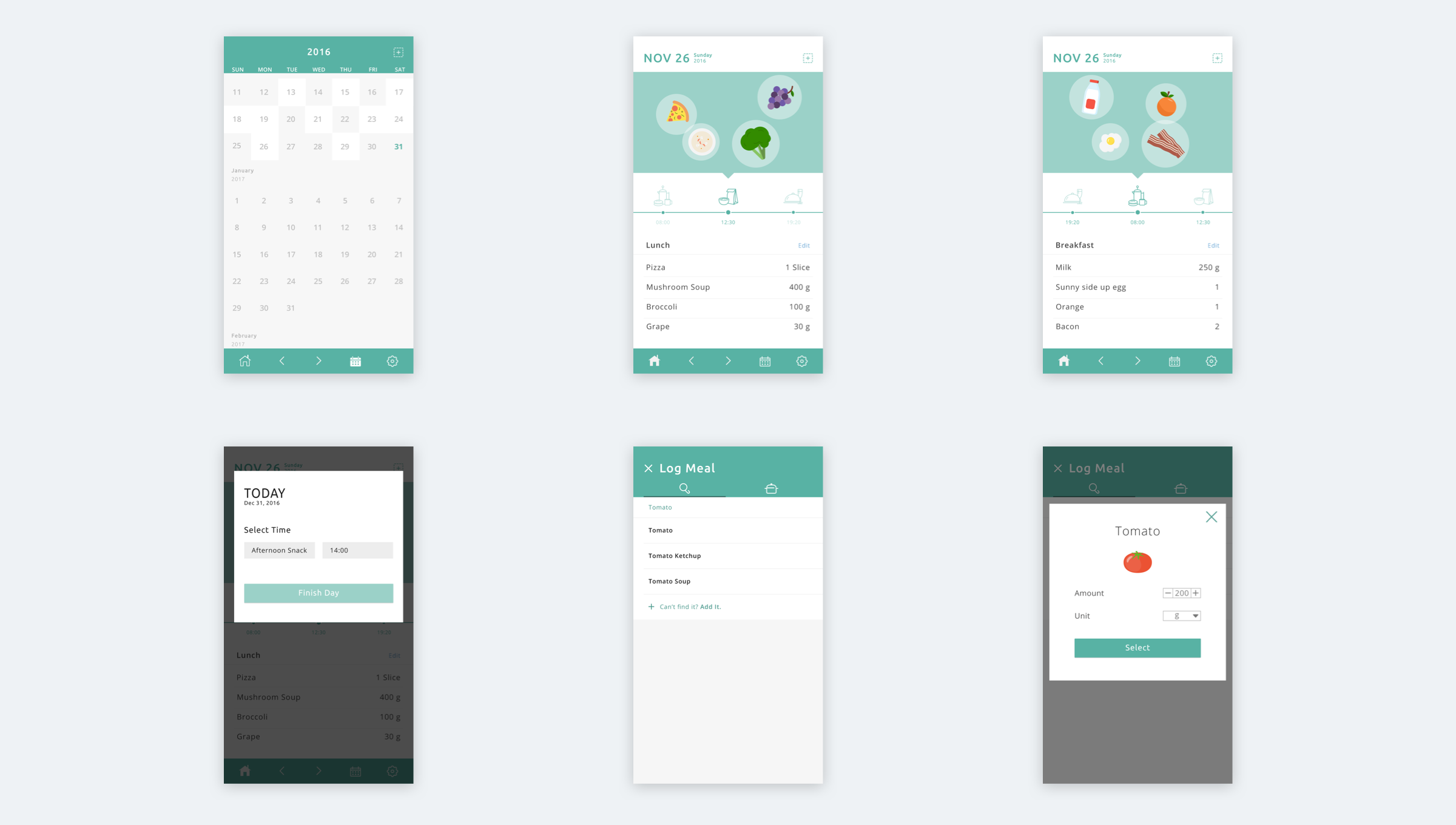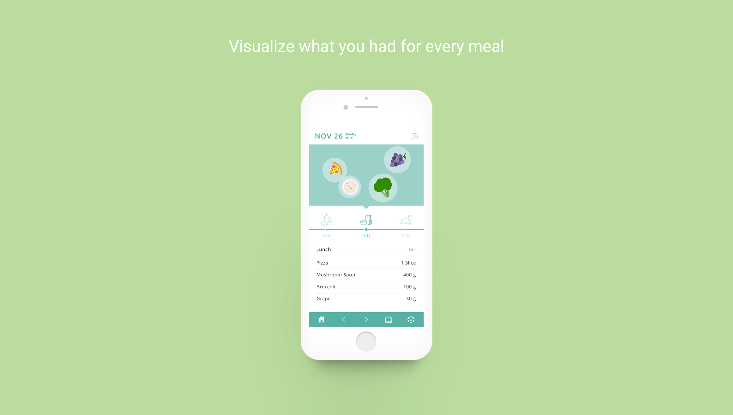 This is a side project I collaborated with my ios developer friend, a fun and interactive food journal app. We both are food lovers, at the mean time we used quite a few food apps to log our food intake. At the time I realized the apps that I've used lack of visual element to communicate with user (me). That's probably the main reason why we started this project -- we hope to create a nice way to visualize every single meal.