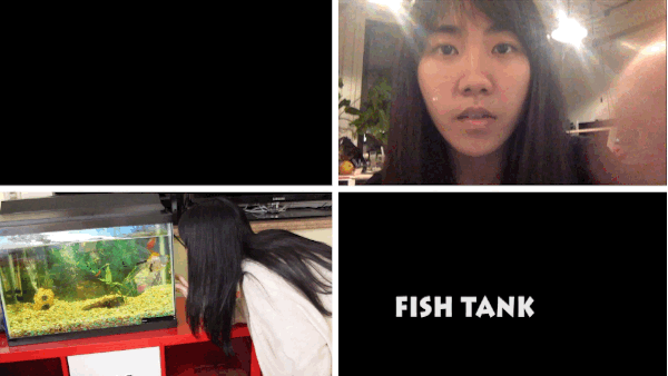 When a fish tank looking at me, it sees me with a few swimming fishes, and some ripples.