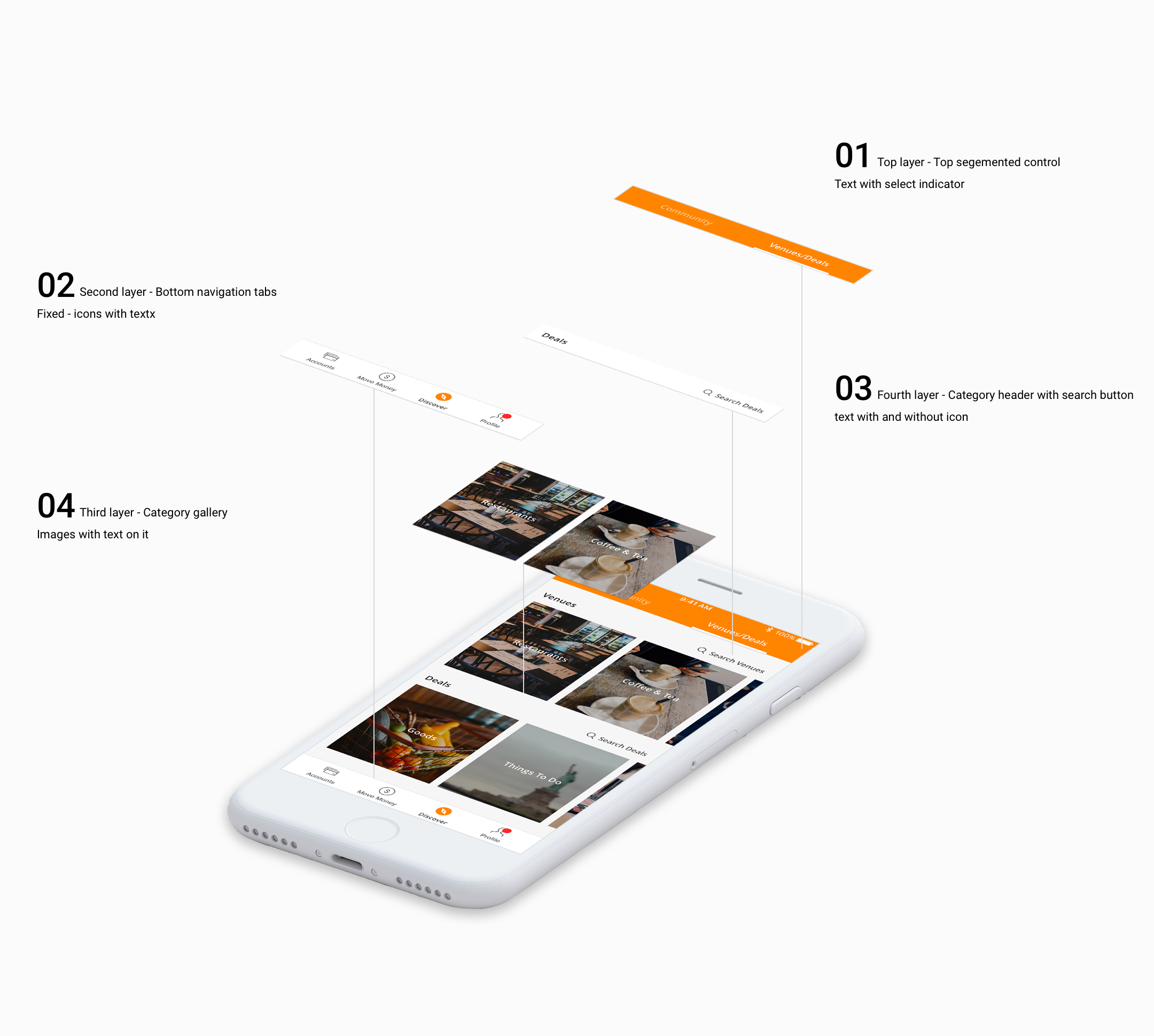 From the data we got from our clients, iOS is the most widely used platform where users download the app. We decided to apply the redesign process from iOS app. The objectives include to raise customer engagement through personalized feed, generating trending venue and deals, and providing customers with useful and relevant content that enhances their Urban FT app relationship.