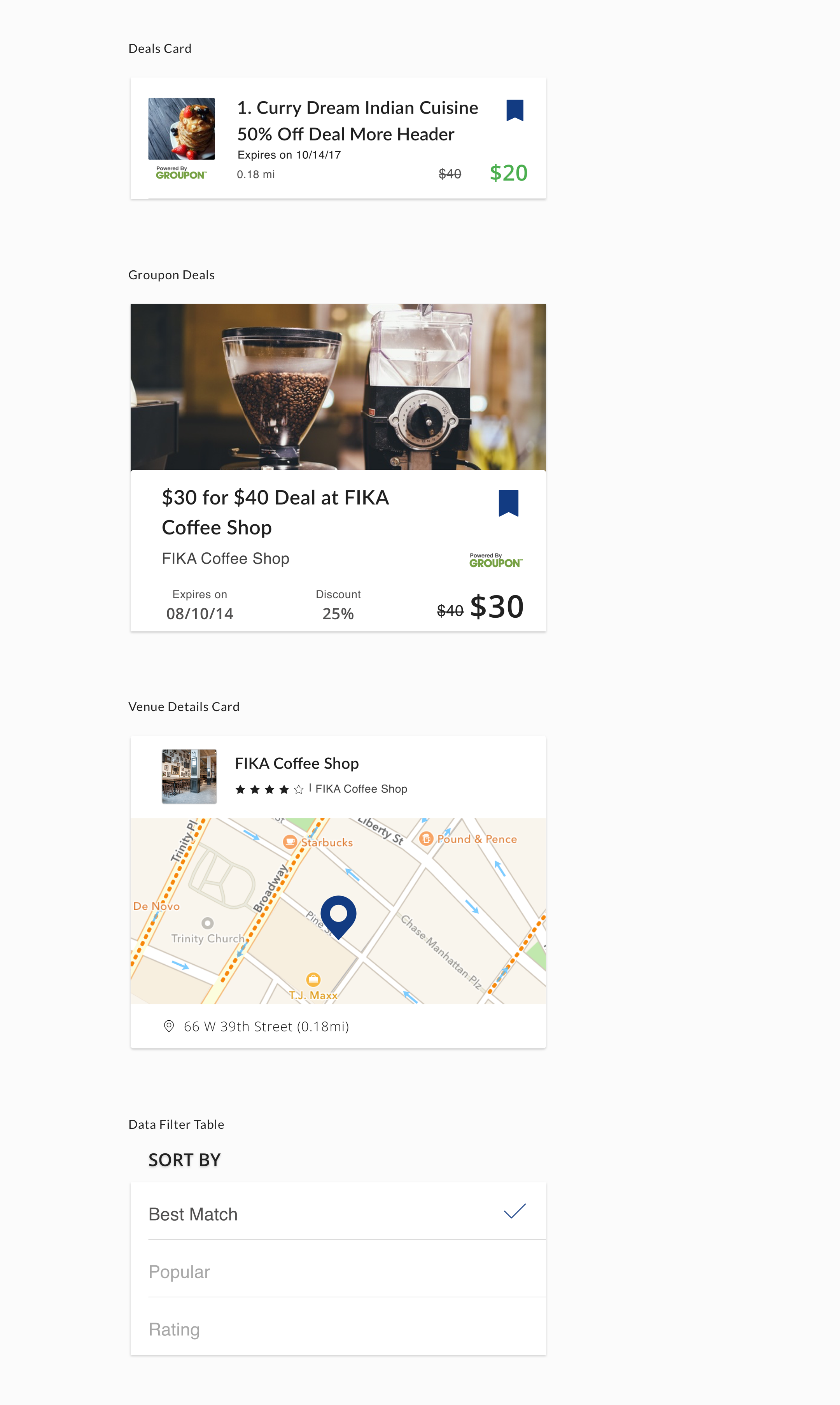 We applied the feedback back to wireframes as well. Eventually and collaboratively, We made over 50 screens in total. I was responsible for the complete deals and most of finance section, as well as the Venue search section. Below are a part of the collection.